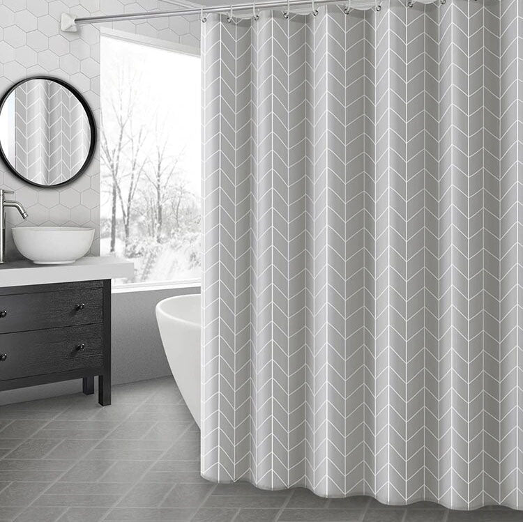 Päivitä kylpyhuoneesi tällä tyylikkäällä Harmaa kalanruotokuvioinen design-suihkuverho -valinnalla