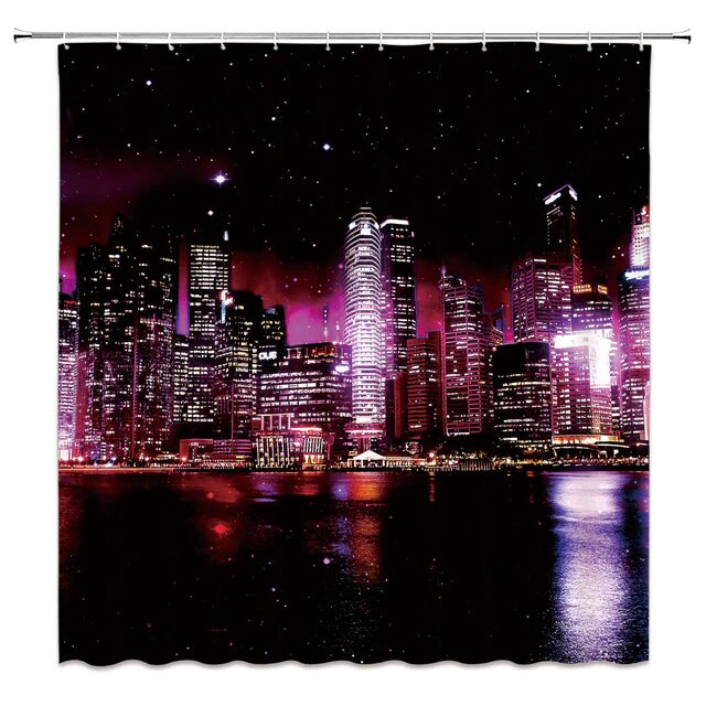 Muuta kylpyhuoneesi ilme Kaupungin siluetti yöllä suihkuverholla!
