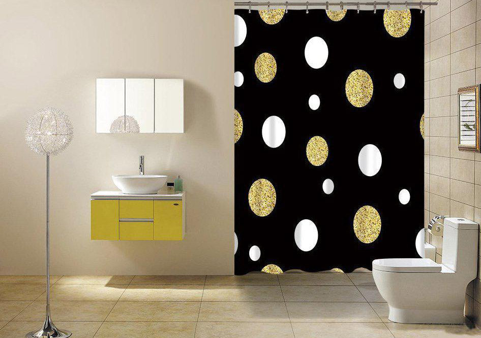 Korosta kylpyhuonettasi upealla Musta suihkuverho kultaisilla glitter-pilkuilla!