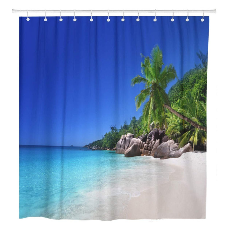 Älä odota tuodaksesi palan paratiisia kotiisi. Tämä Paratiisisaari ranta-aiheinen suihkuverho on täydellinen tapa lisätä rentoutumista ja eksoottista kauneutta päivittäiseen rutiiniisi. Tilaa omasi jo tänään ja ala muuttaa kylpyhuonettasi trooppiseksi pakopaikaksi, josta olet aina unelmoinut!