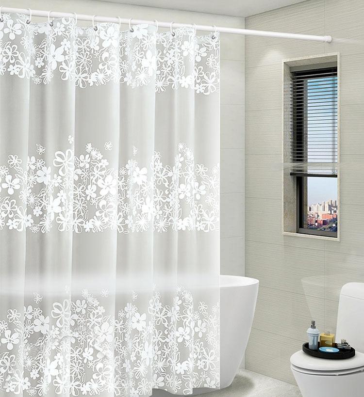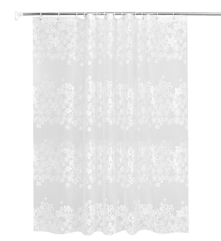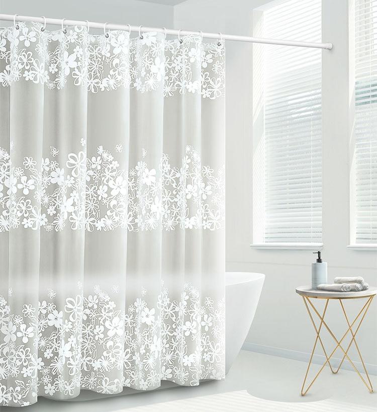 Nauti jokaisesta hetkestä tämän Puoliläpinäkyvän suihkuverhon valkoisella kukkakuviolla kanssa.