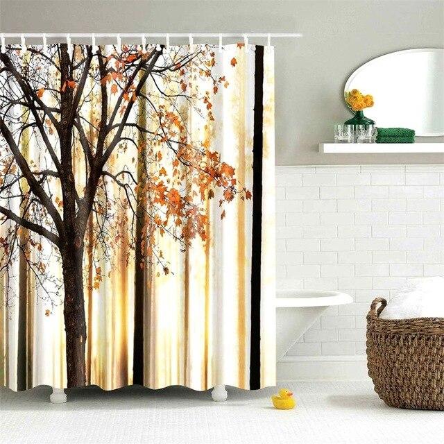 Muuta kylpyhuoneesi rentouttavaksi pakopaikaksi – Suihkuverho kauniilla syksyisellä metsämaisemalla