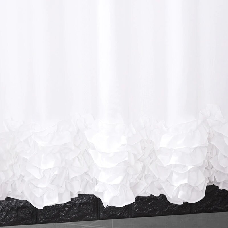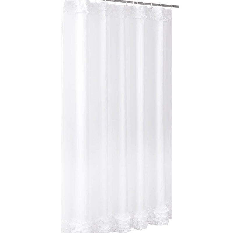 Tämä tyylikäs yksivärinen valkoinen suihkuverho erottuu joukosta hienostuneilla, pienillä yksityiskohdillaan. Vaikka verho on pääosin puhdas valkoinen, sen ylä- ja alareunassa on kevyttä rypytystä ja pitsimäistä kuviota, jotka lisäävät siihen pehmeyttä ja luonnetta ilman, että kokonaisuus menettää minimalistista charmiansa. Nämä huomaamattomat, mutta kauniit elementit nostavat verhon ulkonäön uudelle tasolle ja tekevät siitä enemmän kuin vain käytännöllisen esineen – se on osa sisustustasi. Anna valkoisen värin heijastaa valoa, jolloin kylpyhuoneesi tuntuu avarammalta ja kutsuvammalta.